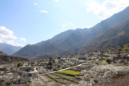 在瀘定縣冷磧鎮(zhèn)、德威鎮(zhèn)等地,桃花、油菜花及櫻花競相開放,一團(tuán)團(tuán)、一簇簇,綴滿枝頭,藍(lán)天、白云與各色花兒相交,金黃花海在微風(fēng)中起伏。一畦畦油菜花田錯(cuò)落有致、層次分明,綿延不斷。“二月櫻花開,三月桃花盛,四月紅櫻桃,五月水蜜桃?!背擞筒嘶ǎ磕觋柎喝?,瀘定的桃花也隨著和煦春風(fēng)落滿枝頭滿樹的花芽沁著香氣,一點(diǎn)點(diǎn)溢到空氣中,香了春風(fēng),也香了整座城。