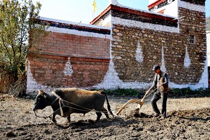“春耕、夏耘、秋收、冬藏”是大地的“四季歌”。幾場春雨過后,大渡河流域氣溫逐漸回升。時(shí)下,穿行于我州 大渡河流域廣袤的山川田野間,到處是一派搶農(nóng)時(shí)的忙碌場景。沉寂的田野,開始熱鬧起來。農(nóng)戶們?yōu)榱艘荒甑暮檬粘?,背上背簍、帶著鋤頭、趕著耕牛,走進(jìn)阡陌縱橫的田野,鉚足“?!眲艃?,翻土、修剪、澆水、除草,田野間好不熱鬧。一幅忙春耕、勤備耕的“春耕圖”已在甘孜大地徐徐展開。