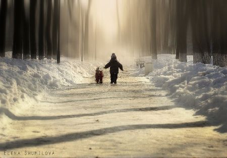 兩個(gè)毫不知情的小男孩兒無疑為這種電影畫面般精美的風(fēng)景上添上了最美的一筆。無論是在一條泥濘的小路,還是陰冷的森林,或是在室內(nèi)。Elena捕捉到了那束最完美的光線,正巧照射在小男孩兒的身上,如陰雨天突 然出現(xiàn)的太陽,一切都變得不再陰郁而充滿陽光。Elena說,“我比較喜歡自然光,無論是在室內(nèi)還是室外,我喜歡各種各樣的光線環(huán)境,街燈,蠟燭,煙霧, 雨天,雪天,任何一種都能給予畫面更深度的視覺沖擊與意義。