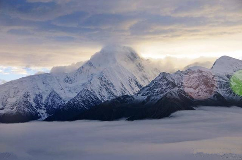 貢嘎山位于康定城南約55千米處,“貢嘎”為藏語(yǔ)“雪白”之意。貢嘎山險(xiǎn)峻挺拔,峰項(xiàng)有70平方米的平臺(tái),終年積雪覆蓋,晴空萬(wàn)里時(shí),閃耀著熠熠光芒,瑰麗壯觀。