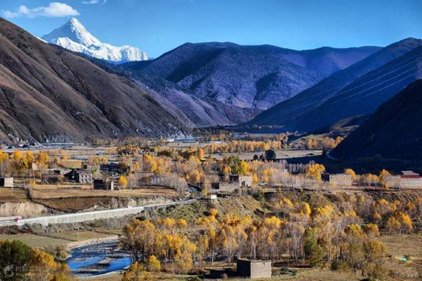 新都橋又稱(chēng)東俄羅,位于318國(guó)道川藏南北線(xiàn)的分叉路口,號(hào)稱(chēng)“攝影家的天堂“。在這可以拍攝到無(wú)垠的草甸,曲折的溪流,金黃的秋葉,山坡上大片在覓食的牛羊,散落著的藏族村寨。隨便一按快門(mén)都能得出一張絕美的風(fēng)景照。