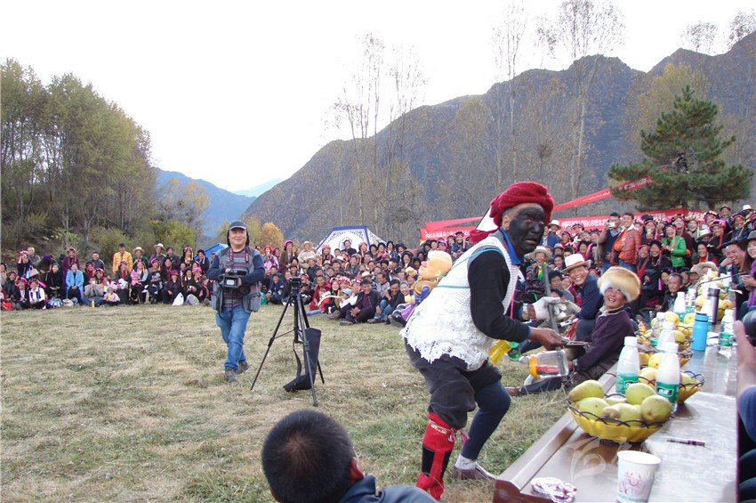 其實,對于這種畫臉的劇種,我以為,它最初應該來源于地頭文化,古時候的嘉絨農(nóng)村,文化生活異常貧乏,在歷史的長河中,原住民主要依靠放牧及種地為生,在一起勞作時,男人和女人之間常常會開一些的玩笑,一般無所避諱。
