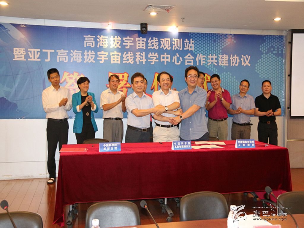 州委副書記、州長益西達(dá)瓦,中國科學(xué)院高能物理研究所所長王貽芳,省發(fā)改委重點辦主任胡玉清,中科院成都分院副院長陳鋒出席簽署儀式。儀式由中科院成都分院黨組副書記王嘉圖主持。