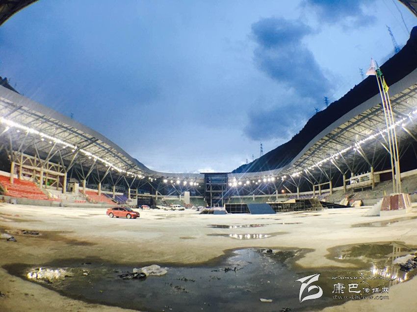 本網(wǎng)訊(余秋林 本網(wǎng)記者 肖宵)第九屆康巴藝術(shù)節(jié)主場館之一的康定北門體育場裝修已近尾聲。圖為體育場夜景。