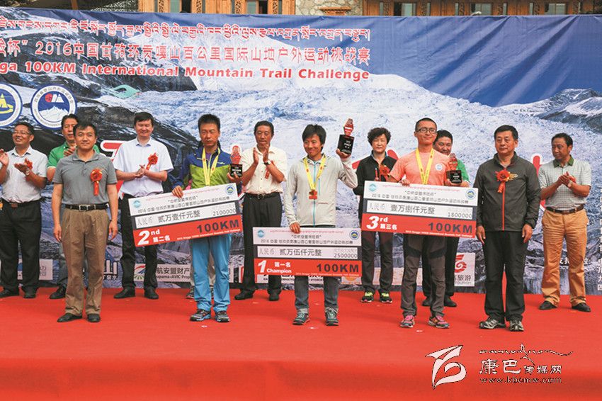 27日凌晨5時(shí),參賽選手從康定情歌廣場出發(fā)后,運(yùn)動員們不畏艱險(xiǎn),你追我趕,各顯神通,拼盡全力,最終完成了50公里和100公里的賽程。經(jīng)過激烈的角逐,實(shí)力強(qiáng)勁的運(yùn)艷橋以13小時(shí)零48秒的成績將男子組100公里冠軍獎(jiǎng)牌收入囊中,姚妙以14小時(shí)39分32秒的成績獲得女子組100公里冠軍;50公里男子組、女子組冠軍分別被明定邦和牛麗華摘取,成績分別是5小時(shí)38分12秒和6小時(shí)58分38秒。閉幕式現(xiàn)場,賽事組委會為獲得各項(xiàng)賽事前三名的選手頒發(fā)了獎(jiǎng)金、獎(jiǎng)杯與獎(jiǎng)牌。