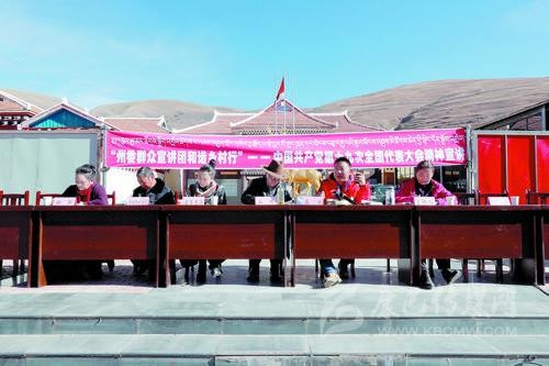 “十九大開(kāi)幕那天,我雖然全程收看了實(shí)況轉(zhuǎn)播,但是我漢語(yǔ)不好,沒(méi)怎么聽(tīng)懂,今天州委群眾宣講團(tuán)用我們聽(tīng)得懂的話(huà)進(jìn)行宣講后,我對(duì)十九大精神有了更進(jìn)一步了解,我們的好日子來(lái)啰!” 丹珍老阿媽高興地說(shuō)。
