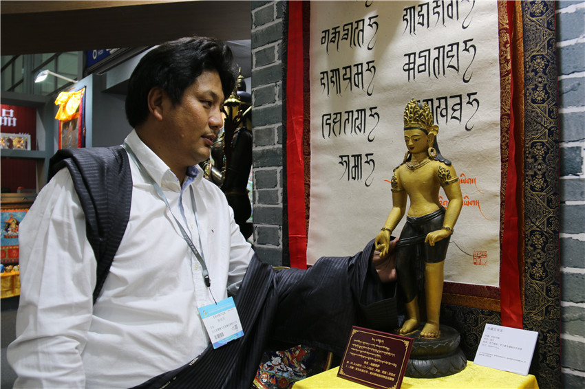 “三天來,市民了解工藝品的多,購買的不是很多,但也有采購意向協(xié)議的?!比斩鄬τ浾哒f,作為獨(dú)具特色的藏族非物質(zhì)文化遺產(chǎn),為搶救這一特殊工藝技術(shù),我們公司在州委、州政府和縣委、縣政府以及州縣兩級文化部門的關(guān)心支持下,從2000年開始恢復(fù)董察花色青銅的加工工藝,開發(fā)了上百種精神文化類產(chǎn)品、生活使用類產(chǎn)品、美飾擺設(shè)類產(chǎn)品以及演奏樂器類產(chǎn)品。