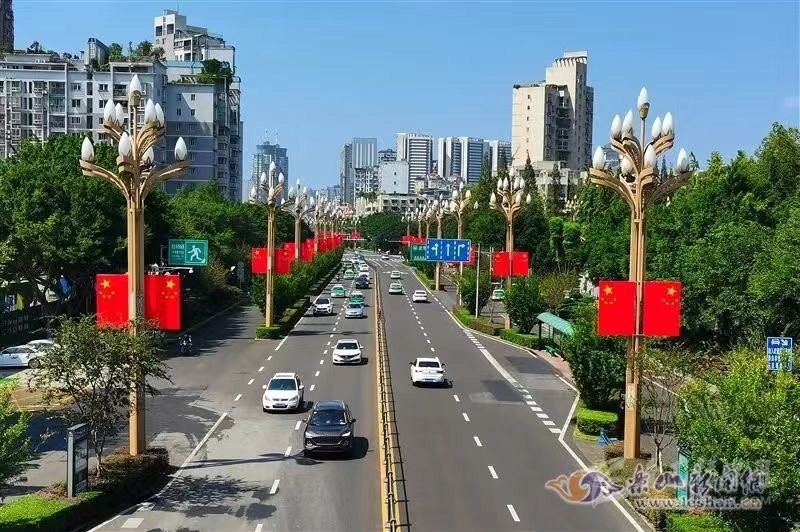 花團(tuán)錦簇、紅旗飄飄……在遂寧,主要街道及重點區(qū)域紛紛懸掛鮮艷的五星紅旗,形成一片片“紅色的海洋”,洋溢著濃濃的節(jié)日氛圍。