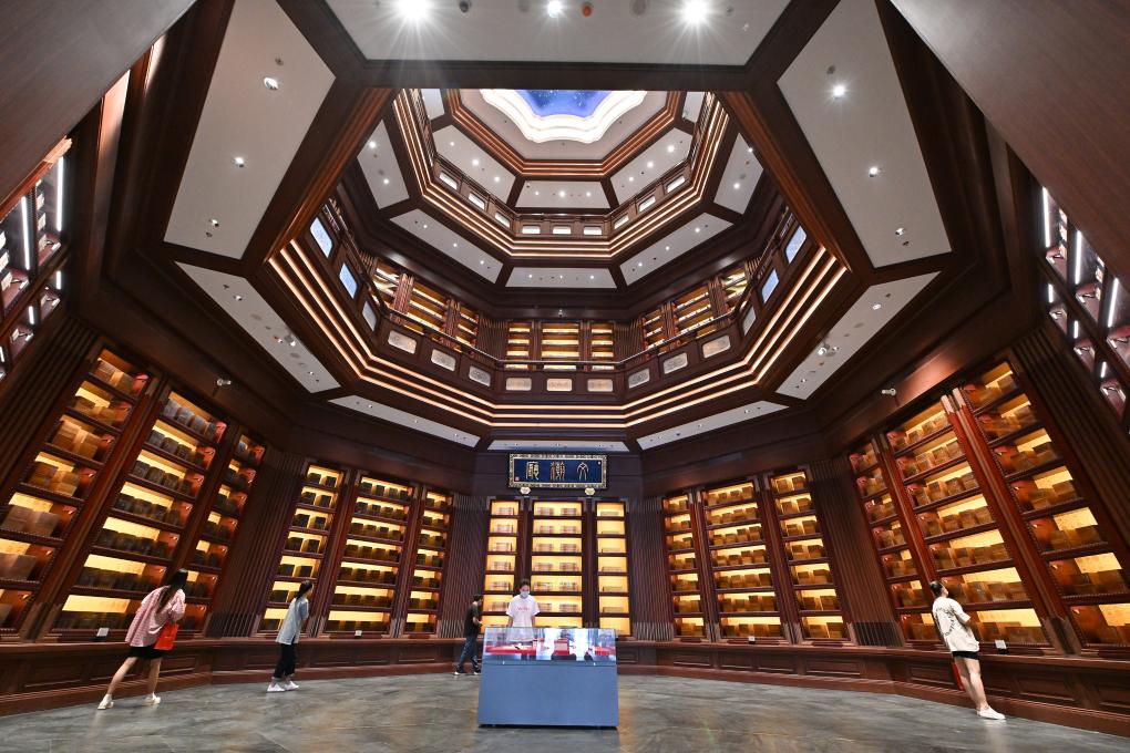 ?? 2022年7月30日,觀眾在中國(guó)國(guó)家版本館中央總館文瀚廳內(nèi)參觀。當(dāng)日,中國(guó)國(guó)家版本館開館暨展覽開幕式在中國(guó)國(guó)家版本館中央總館舉行。新華社記者 李鑫 攝