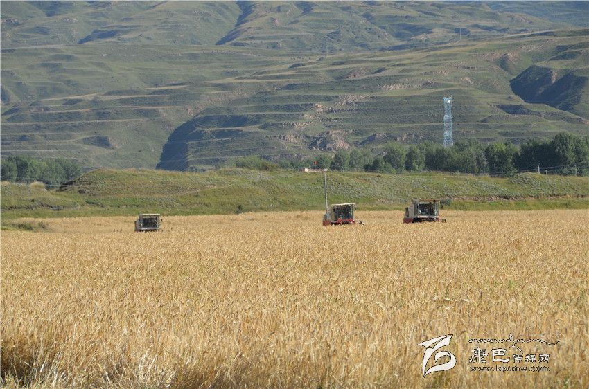 青稞基地機(jī)械化收割。