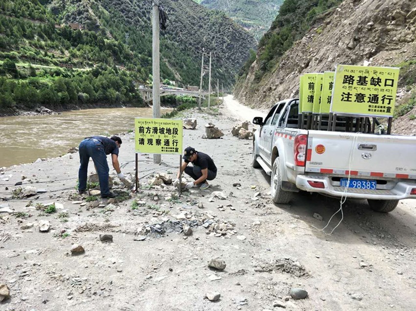 此次排查工作在原有的基礎上,增設安全隱患警示標識標牌近46處,并用油漆在道路沿線涂寫安全隱患標志200余處。動用裝載機10次臺班,共組織人員50人次。清理邊坡垮塌140余處近21000立方米,清除路邊亂堆亂放的砂石、木材等40處,機械填補路面近900余處,保障公路有效路面同時,抓好后續(xù)的巡查、防范工作。同時,加大公路路況巡查力度,對易發(fā)生災害的路段全面開展安全隱患排查,安排專人重點監(jiān)控公路沿河路段、高邊坡危巖路段及路基沉降路段,并設立警示標志等提醒過往車輛及行人注意安全通行。