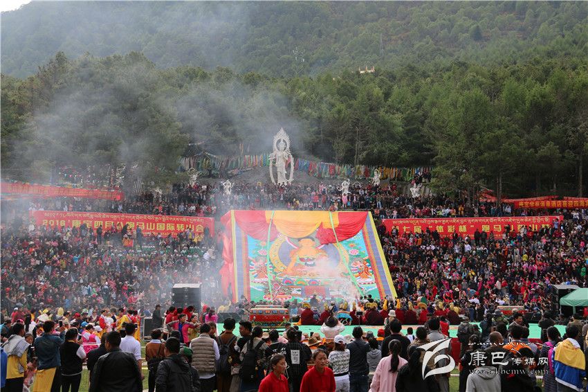 上午九時許,在陣陣法號和僧侶的誦經(jīng)聲中,莊嚴(yán)、隆重的“四月八”曬佛儀式拉開了跑馬山國際轉(zhuǎn)山會系列活動的序幕。在人們的熱切期待中,釋迦牟尼的巨型唐卡畫緩緩展現(xiàn)在人們眼前。此時,來自不同省份和地區(qū)以及外國友人,早已將數(shù)碼相機(jī)或手機(jī)準(zhǔn)備好,拍下美好的瞬間。來自河南的游客黃先生說:“能參加到康定‘四月八’轉(zhuǎn)山會,真是太有福了,這是多年的夢想,今天終于實現(xiàn)了。特別看到這幅釋迦牟尼唐卡像,真是壯觀,很震撼。”同樣,來自英國游客也被濃烈的儀式氣氛所感染,手中的相機(jī)就沒停下過,并用流利中文說:“節(jié)日舉辦得很好,不僅山美、水美,且民族文化底蘊(yùn)無窮,真是太棒了。”