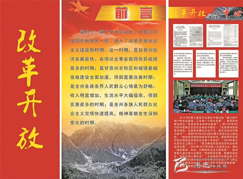 《甘孜州檔案館愛國主義教育基地》的整個展覽分為四大板塊。第一部分命名為“自治政權(quán)的建立”,向參觀者介紹了甘孜藏族自治州誕生的歷史過程;第二部分是“民主改革運動”,把人們帶回了那段不能忘記的烽火歲月;第三部分是“社會主義建設(shè)”,深情地回顧了在建設(shè)社會主義事業(yè)中我州所取得的不平凡的成就;第四部分是“改革開放”,讓人們重溫了在改革開放的大潮中所經(jīng)歷的那些充滿激情的經(jīng)歷。