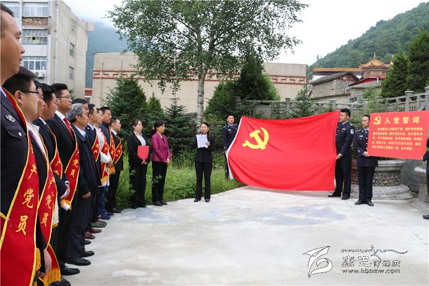 圖為新黨員面向黨旗莊嚴宣誓。
