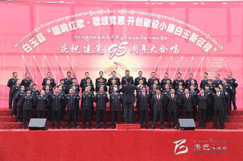 白玉縣公安干警唱紅歌慶祝建黨95周年。