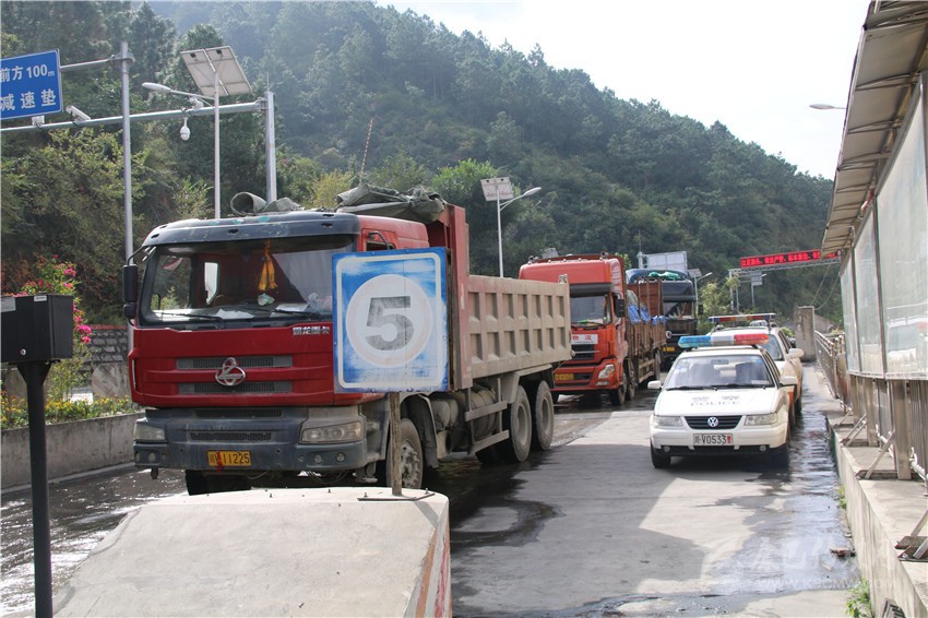 去年10月21日,全國將執(zhí)行新的貨運車裝載標(biāo)準(zhǔn),將降低貨車運載量。20日,瀘定檢測站迎來了大貨車運輸高峰,當(dāng)天通過瀘定檢測站的進(jìn)州貨車就高達(dá)953輛,陡然增加的車流量,讓瀘定檢測站執(zhí)法人員忙得不可開交。凌晨1點左右,因距離檢測站數(shù)公里外道路正在施工,造成交通大面積擁堵。盡管不在工作職責(zé)范圍內(nèi),瀘定檢測站除值班人員留守外,交通路政、運管、公安交警、特警全員上陣疏導(dǎo)交通?;謴?fù)通行時,已經(jīng)是凌晨3點過。對于這樣的“家常便飯”,執(zhí)法人員已經(jīng)司空見慣?!安荒茉跈z測站周邊造成交通擁堵,這是我們的職責(zé)”。