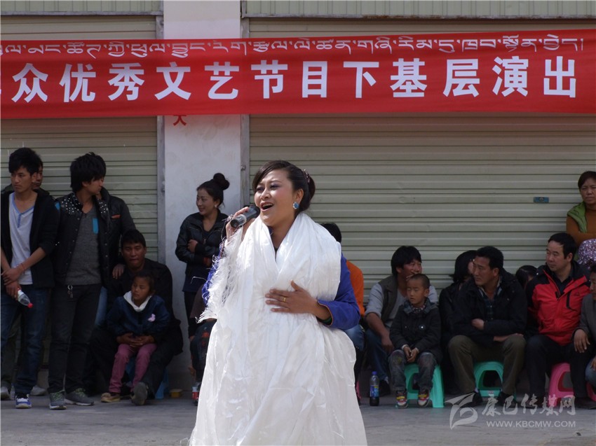 2013年康巴兒女頌黨恩——甘孜州群眾優(yōu)秀文藝節(jié)目赴基層演出”活動(dòng)相繼在稻城、得榮、鄉(xiāng)城、瀘定展開(kāi)。3月的稻城,氣候依然寒冷,特別是稻城亞丁機(jī)場(chǎng),這里海拔高,氣候惡劣,天氣變化莫測(cè),對(duì)于格桑志瑪來(lái)講,到海拔4410米的地方演唱,是一個(gè)很大的挑戰(zhàn)。盡管如此,她希望通過(guò)自己熱情的演唱,能給建設(shè)者送去一絲溫暖。
