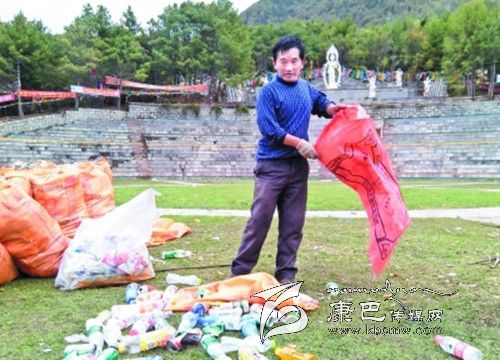在接受記者采訪時跑馬山旅游開發(fā)有限公司董事長昂洛正在跑馬山跑馬坪和公司員工一同清理垃圾,昂洛說:“對于每年四月八后的‘垃圾’問題我真的很無奈,也很難過。跑馬山的景區(qū)規(guī)模有一定的局限性,每一次接待游客不能超過一萬人,要不硬件設(shè)施設(shè)備、安全隱患,當然也包括環(huán)境衛(wèi)生都會出現(xiàn)問題。四月八這一天有一點特殊,這是一個當?shù)氐拿褡屣L(fēng)俗節(jié)日,每到這一天都會有很多市民上山祈福,而且景區(qū)當日不收門票。據(jù)不完全統(tǒng)計今年陸續(xù)上山的游客達到了3萬人以上,在某種意義上是超負荷了。景區(qū)也有載客量,硬件設(shè)施不夠用,也不能完全責怪游客亂扔垃圾,人多了景區(qū)的垃圾桶自然不夠用。傳統(tǒng)的四月八康定本地居民本來就有野餐的習(xí)慣,這是一種習(xí)俗,我們不能打破。吃東西當然就會留下大量的垃圾,不經(jīng)意就會造成垃圾遍地的場面。”