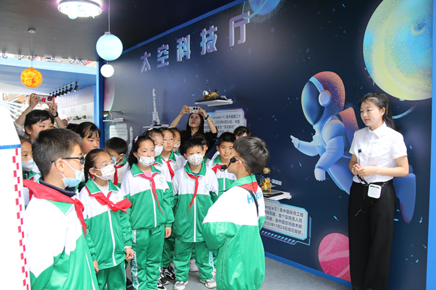 “航天夢(mèng)是中國(guó)夢(mèng)、華夏夢(mèng),神舟十六號(hào)載人飛船發(fā)射成功并進(jìn)入預(yù)定軌道。古人仰望星空,幻想上天攬?jiān)碌膲?mèng)想,在一代代中國(guó)航天人的努力下逐漸變?yōu)榱爽F(xiàn)實(shí)。”“紅領(lǐng)巾”講解員劉嘉沐在解說(shuō)他負(fù)責(zé)的天空科技廳時(shí),將這一喜訊分享給了在場(chǎng)的同學(xué)們。“希望能借神舟十六號(hào)載人飛船發(fā)射成功的機(jī)會(huì),在科普周活動(dòng)中普及航天知識(shí),讓更多的學(xué)生深入了解航天文化,引導(dǎo)青少年傳承航天精神、點(diǎn)燃航天夢(mèng)想?!敝菘茀f(xié)負(fù)責(zé)人告訴記者。