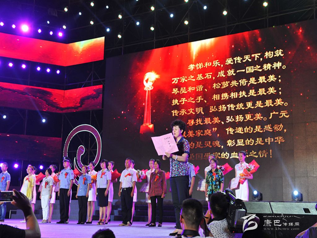 8月31日晚,廣元市隆重舉行“向幸福出發(fā)——尋找最美家庭”家庭文化才藝展演活動(dòng)暨頒獎(jiǎng)典禮。我州丹巴籍農(nóng)婦滕德芬作為20戶廣元市“最美家庭”之一,登臺(tái)領(lǐng)取了“最美家庭”榮譽(yù)證書。圖為省婦聯(lián)副主席張懷青致頒獎(jiǎng)詞。