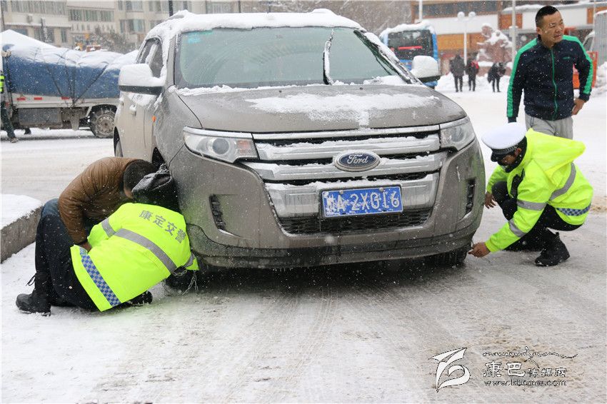 康定交警大隊城區(qū)中隊的扎西澤仁立即走上前去詢問:“前面更滑,你肯定上不去,有沒有鏈條?”車主譚光復(fù)隨即下車答道:“有,可是不會上。”