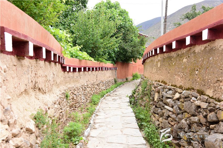 來(lái)到鮮花音樂(lè)小鎮(zhèn),踏著石板鋪成的小道前行,道旁是修葺一新的花臺(tái),半人高的圍墻將一座座錯(cuò)落有致的藏房分隔開(kāi)來(lái),墻上刻著關(guān)于巴塘弦子、歌卦、藏戲、飲食以及紅色文化的介紹。“十八軍路”、“弦子路”、“藏戲路”……這里的每一條小道都被賦予特殊的名字,展示著巴塘獨(dú)有的民族文化和紅色歷史。