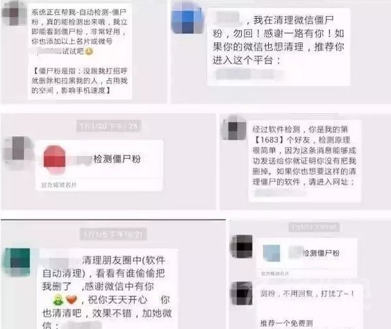 不少網(wǎng)友的微信都會收到類似“xxx你好,清理下朋友圈,效果不錯。真是不清不知道,一清嚇一跳。需要清理可加微信***”這樣的信息,表示可以通過專業(yè)手段找到所有刪除、拉黑、或屏蔽自己的“僵尸粉”,清理微信的聯(lián)系人,可以“釋放手機(jī)內(nèi)存”。
