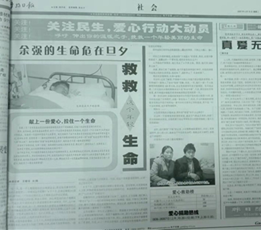 那時(shí),當(dāng)記者將能走訪的部門都走訪完,將能為余強(qiáng)爭(zhēng)取的資金都爭(zhēng)取后,深感愧對(duì)余強(qiáng)一家。他們將所有的希望都寄托給記者,寄托給報(bào)社。可是,記者和報(bào)社卻無法為他們帶來想要的希望。