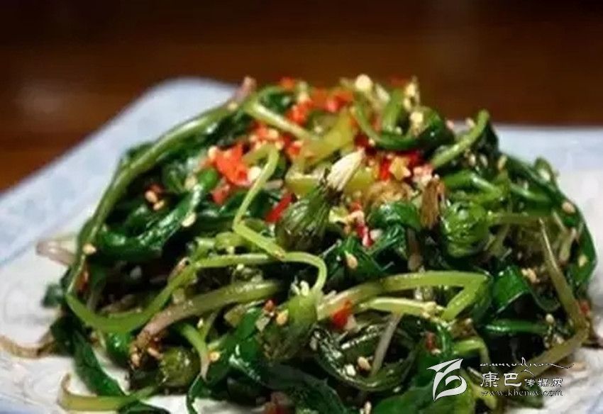 食材:泡發(fā)好的蕨菜、蒲公英、姜、蒜末、醬油、醋、糖、鹽、味精、紅油、芝麻